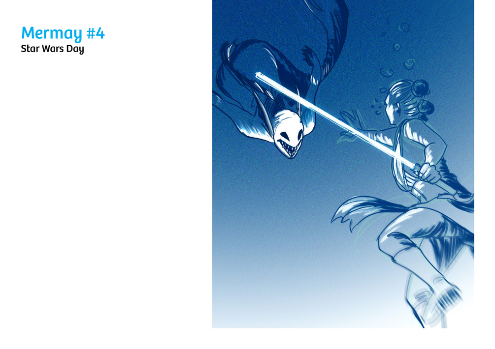 In 2018, I set myself the challenge of completing the full range of 31 Mermay pieces based on the official prompts. The challenge had its good and bad results, as a project like this will usually have. I have since pulled the pieces off of social media to keep things clean and curated, but for those who want to see the whole journey, I have collected all 31 drawings AND the sketches I made to brainstorm into this digital 36-page book with the accompanying prompts.